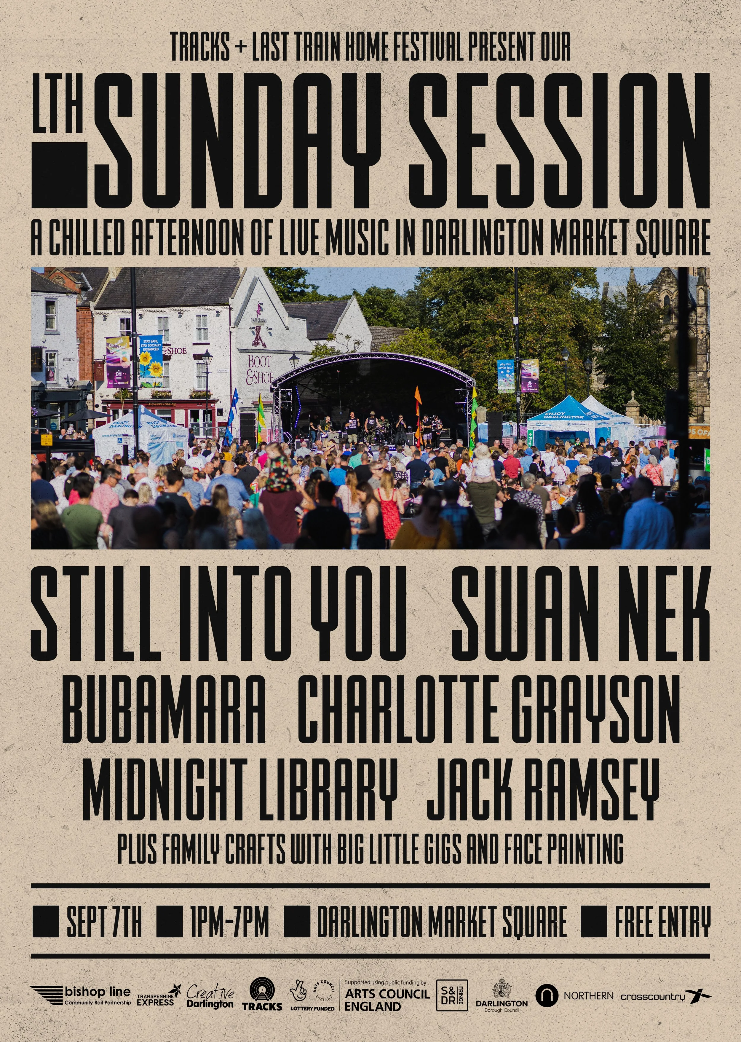 1pm - 7pm on Sunday 7th September, head down for an eclectic array of artists, including rock and pop classics from Still Into You, jazz fusions from SwanNek, soul grooves from Midnight Library and more